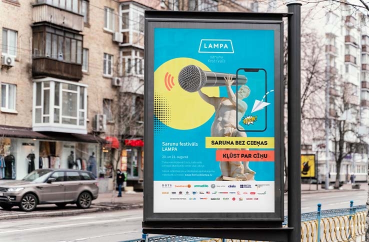 Jau septīto gadu varam saukt sevi par daļu no sarunu festivāla LAMPA radošās komandas! Šī gada virstēma – cieņa – caurvija katru vizuāli, katru baneri, katru sociālo mediju ierakstu. Apzinoties, ka saruna bez cieņas kļūst par cīņu, mēs ieklausījāmies viens otrā un sadarbības partneros, lai radītu lielisku festivālu. Šis gads nesa jaunus pārbaudījumus, jo festivāls bija pieejams gan virtuālajā vidē, gan klātienē Cēsīs. Mēs strādājām pie radošā risinājuma izstrādes, mūsu galvenā dizainere izveidoja arī skaistas telefona ekrāna tapetes. Kā katru gadu rūpējāmies arī par mājaslapas dizainu, sociālo tīklu komunikāciju un dizaina darbiem, izveidojām Instagram filtru, rami un gifus, digitālās kartītes un cieņas testu.